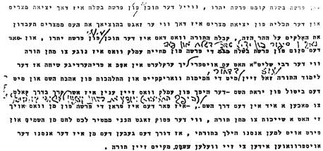 םירצמ תאיצי ךאד זיא חלשב תשרפ ןופ ןכות רעד לייוו ,ורתי תשרפ טמוק חלשב תשרפ ךאנ ןודבעת םירצממ םעה תא ךאיצוהב טגאז רע יוו ךאד זיא םירצמ תאיצי ןופ תילכת רעד ןוא ןוא ,ורתי תשרפ ןופ ירקיע ןכות רעד זיא סאד סאוו הרותה תלבק ,הזה רהה לע םיקלאה תא ןופ השרפ יד [טמוק] חלשב תשרפ ןופ םויס םעד ראפ ןוא חלשב 'פבש מ"יצי ןופ רופיס ן'ךאנ ךילריפסיוא סע טאה א"טילש יבר רעד יוו הרות ןתמ וצ עגונ זיא סאוו קלמע תייחמ וליחדב] ר"וחדב ןייז לאז זומ הרותה דומיל רעד זא החיש עגידרעהירפ א ןיא טרעלקרע ןופ לוטיב םעד טימ ןוא םשה תבהא ןופ תובהלתה ןוא טייקמיראוו תומימח יד טימ ,[ומיחרו דיא א ןעכאמ וצ טלאק ךרדב ךרק רשא זיא ןינע ןייז סאוו קלמע ןופ ךפיה רעד - םשה תארי ראפ זיא - ([?] ךפיה) וב דורמל ןווכמו ונובר תא עדוי (תומימחה ךפיה) םשה ךרד םעד ןיא . . הרות ןתמ וצ תוכייש א טאה יז ךיוא סאוו ןמ ןופ השרפ יד ןארפ זיא םעד |
