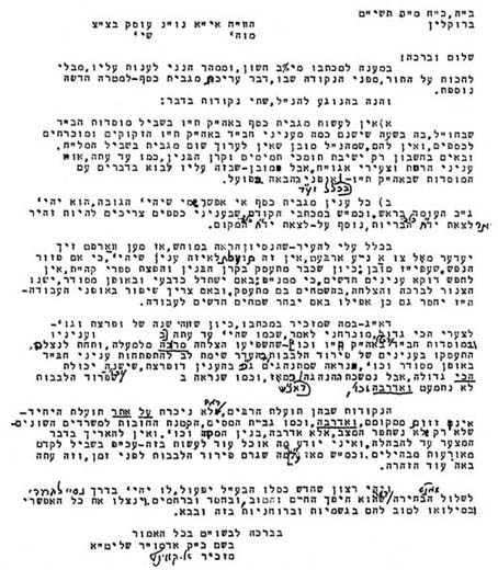 הזב םג הנה ,םיסנב לגרומ רפכהש ןויכ רשא ,םש ש"נאמ הזיאל יתבתכש ומכ ר"היו . . ה"בקה לש ותכרב קיזחמ ילכש ל"זרמ לע טיבהל ילבמש ,סנ ךותב סנ ,תיסנ הגהנה 'יהת תולק לועפת אל ןכו ,ה"בקה לש ותכרב תלבקל ל"נה תוערואמה ו"ח וקיזי אל ,םולשה אוה .הלימה ןבומ אלמב ד"בח רפכ הז 'יהיו .םינבה לע אלו תונבה לע םירוהה לש תעדה דסחב אקוד הז לכ 'יהי הנה - תואישנה ותלבק תישארב ר"ומדא ח"ומ ק"כ לש ותשקבכו |